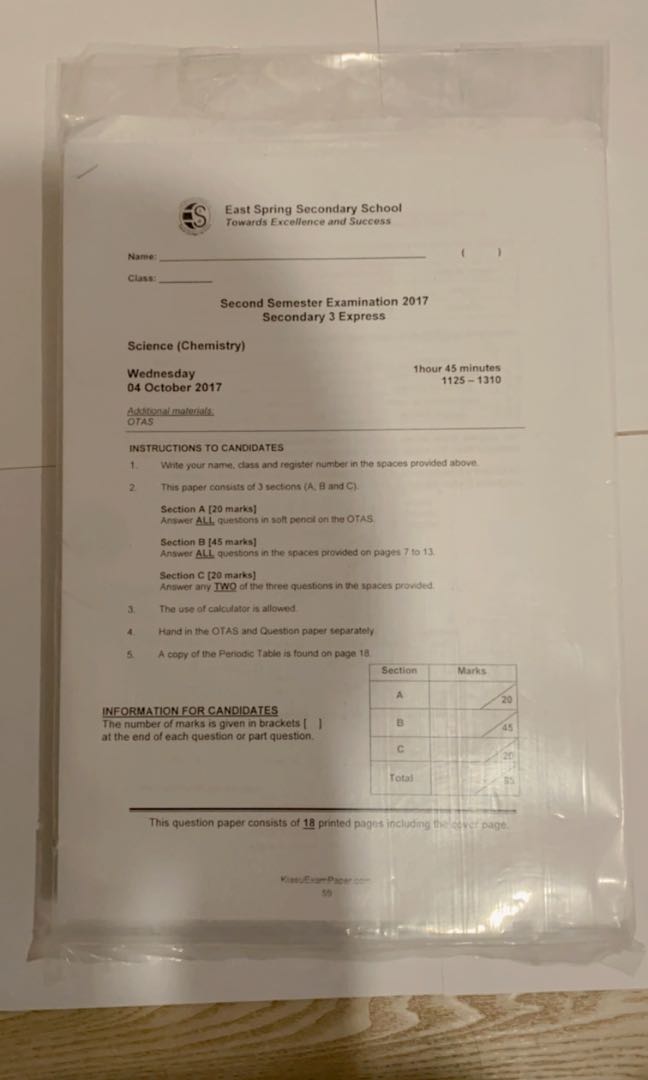 Sec 3 Express Combined Science Chemistry Practice Exam Test Papers Hobbies Toys Books Magazines Assessment Books On Carousell