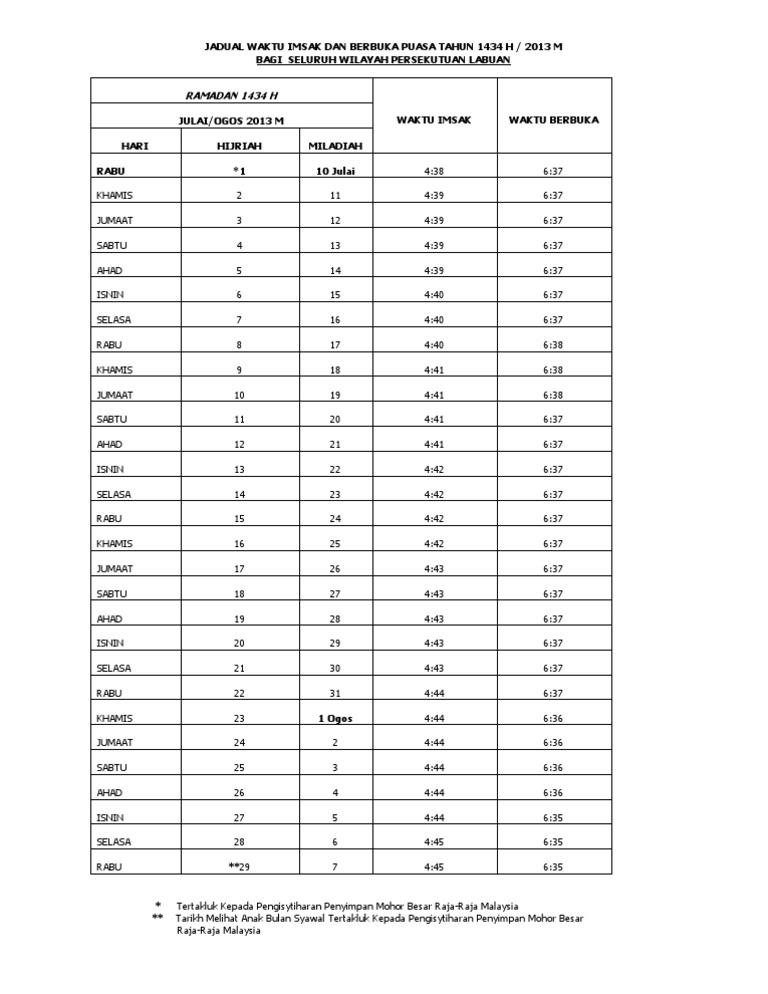 Jadual Waktu Imsak Dan Berbuka Puasa Wp Labuan Pdf